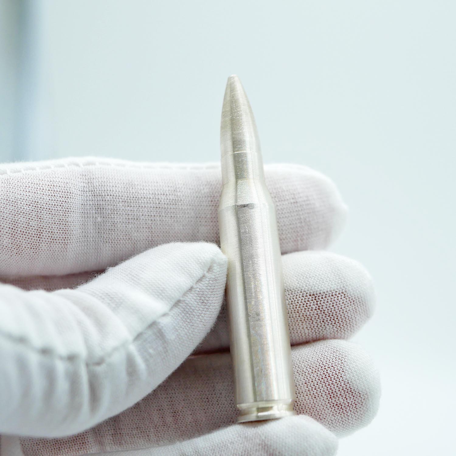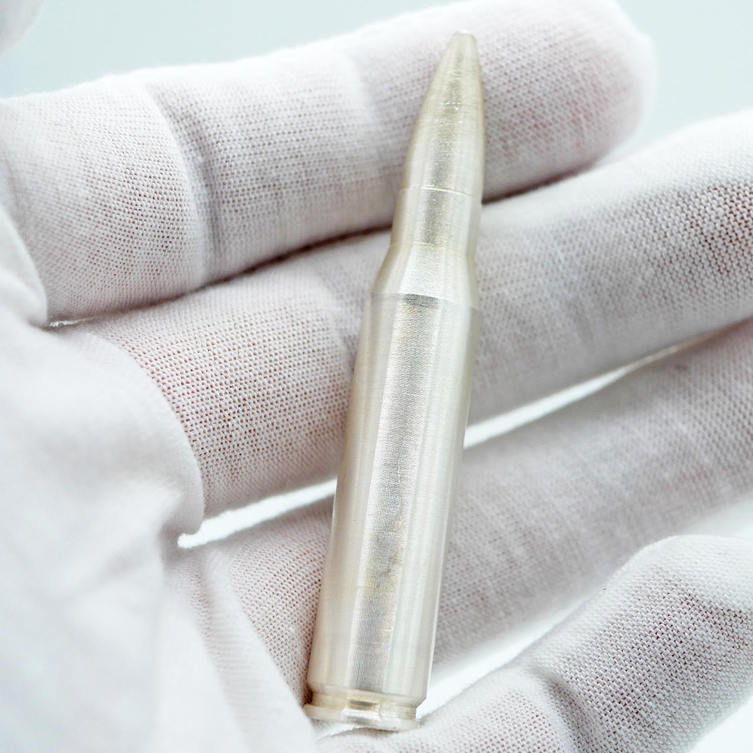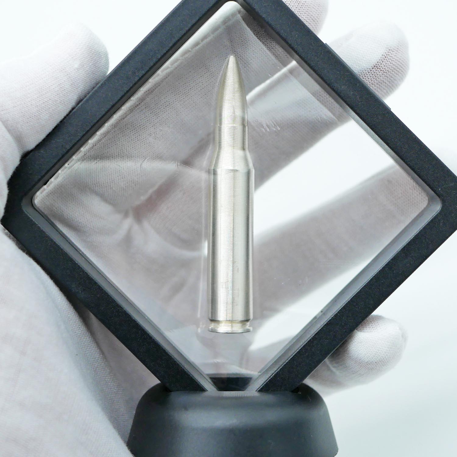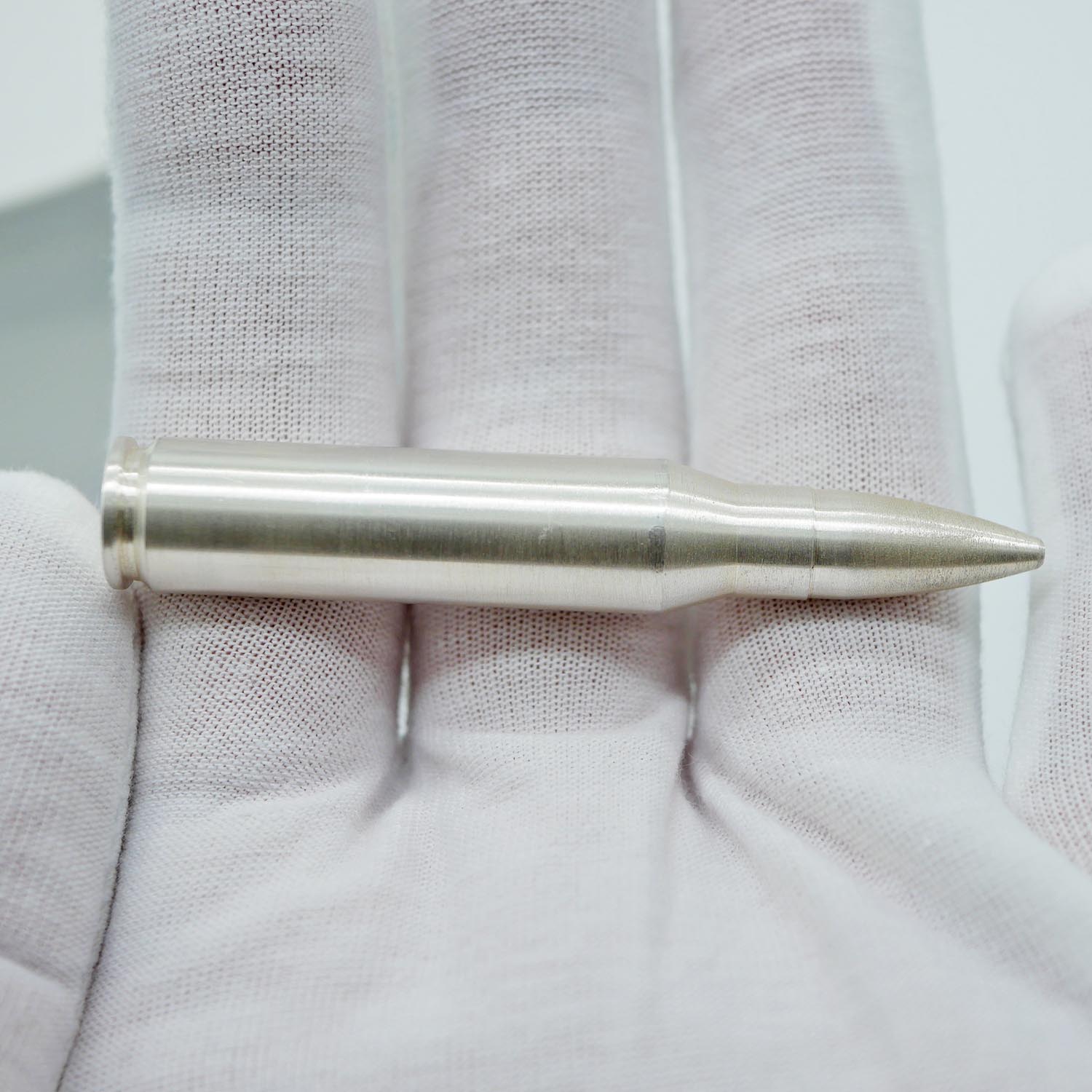 Crafted from .999 pure silver, this masterpiece represents the relentless pursuit of excellence, akin to the sharpshooter who never misses their mark. It's a replica of a .308 caliber rifle round, this solid silver bullet embodies the epitome of accuracy and skill.