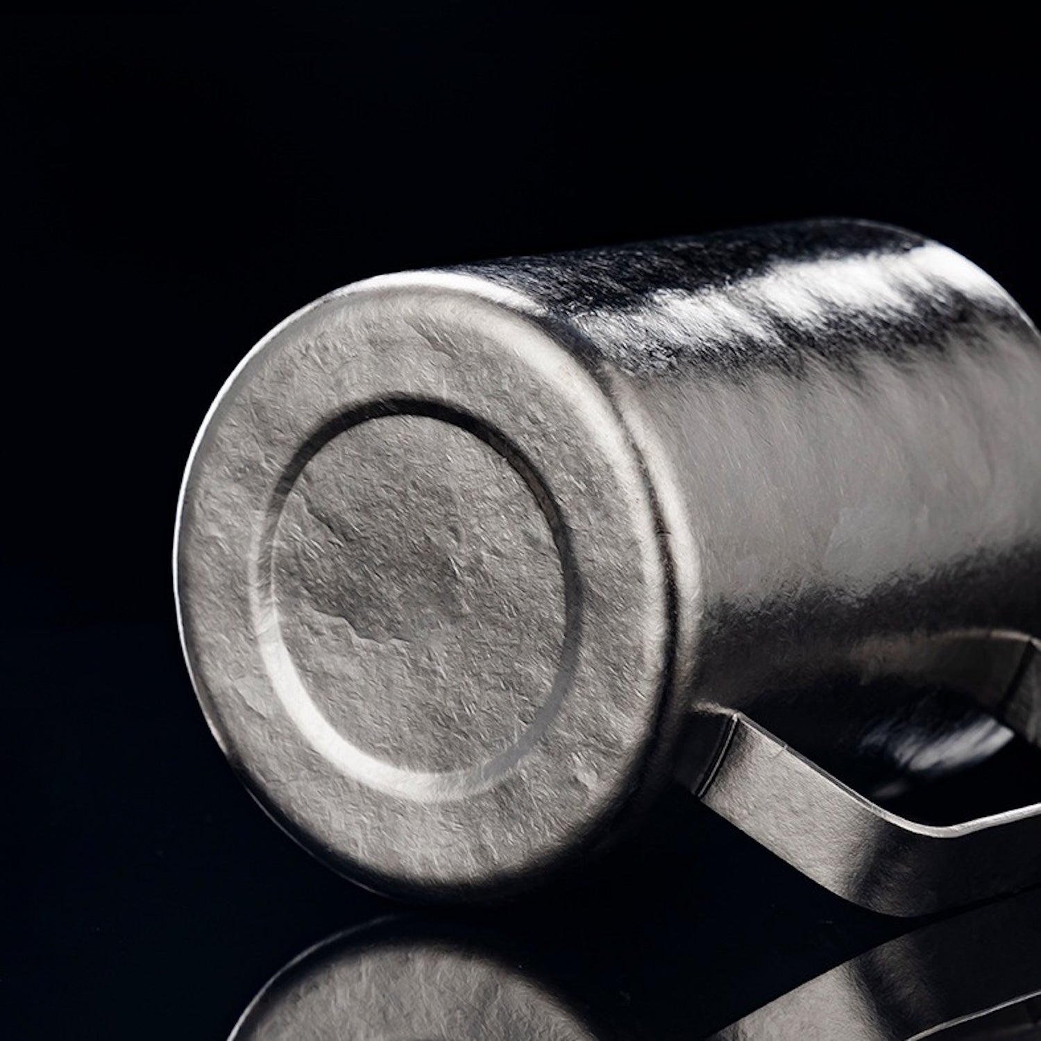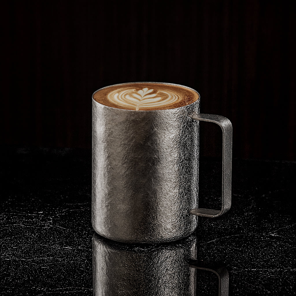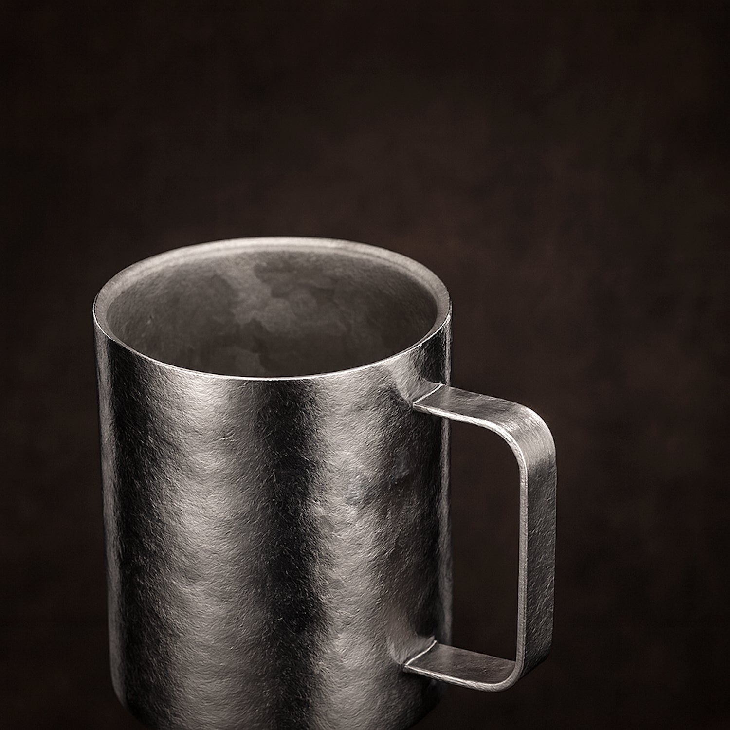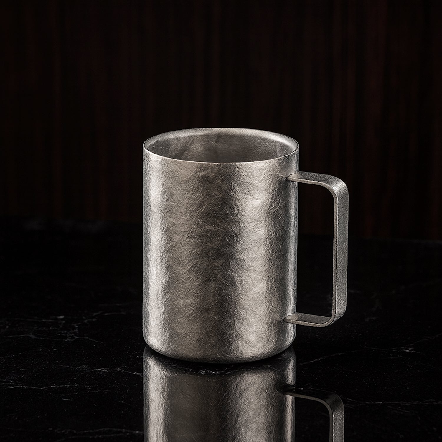 The Sleek Titanium Mug fuses pure material innovation with minimalist elegance. Made from double-walled pure titanium, it is naturally antibacterial, non-toxic, and entirely flavor-neutral—ensuring every sip of coffee, soda, whiskey, or beer remains authentic and unaltered. Its subtly tapered silhouette fits perfectly in hand, while the Ice Blossom Titanium Finish resists fingerprints and scratches, shimmering with a crystalline metallic texture. Strong yet lightweight, sculptural yet practical, this mug is designed to elevate daily rituals into refined moments of clarity and presence.
