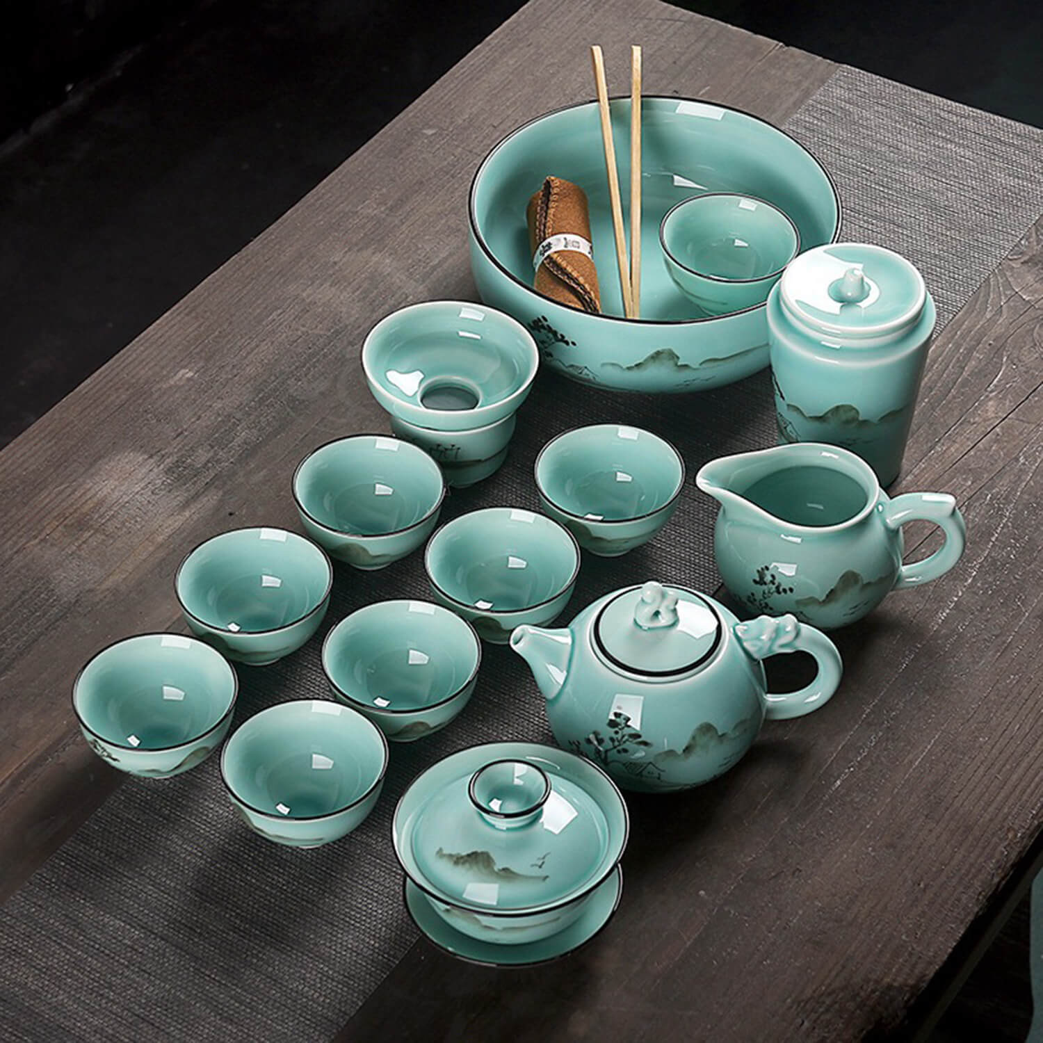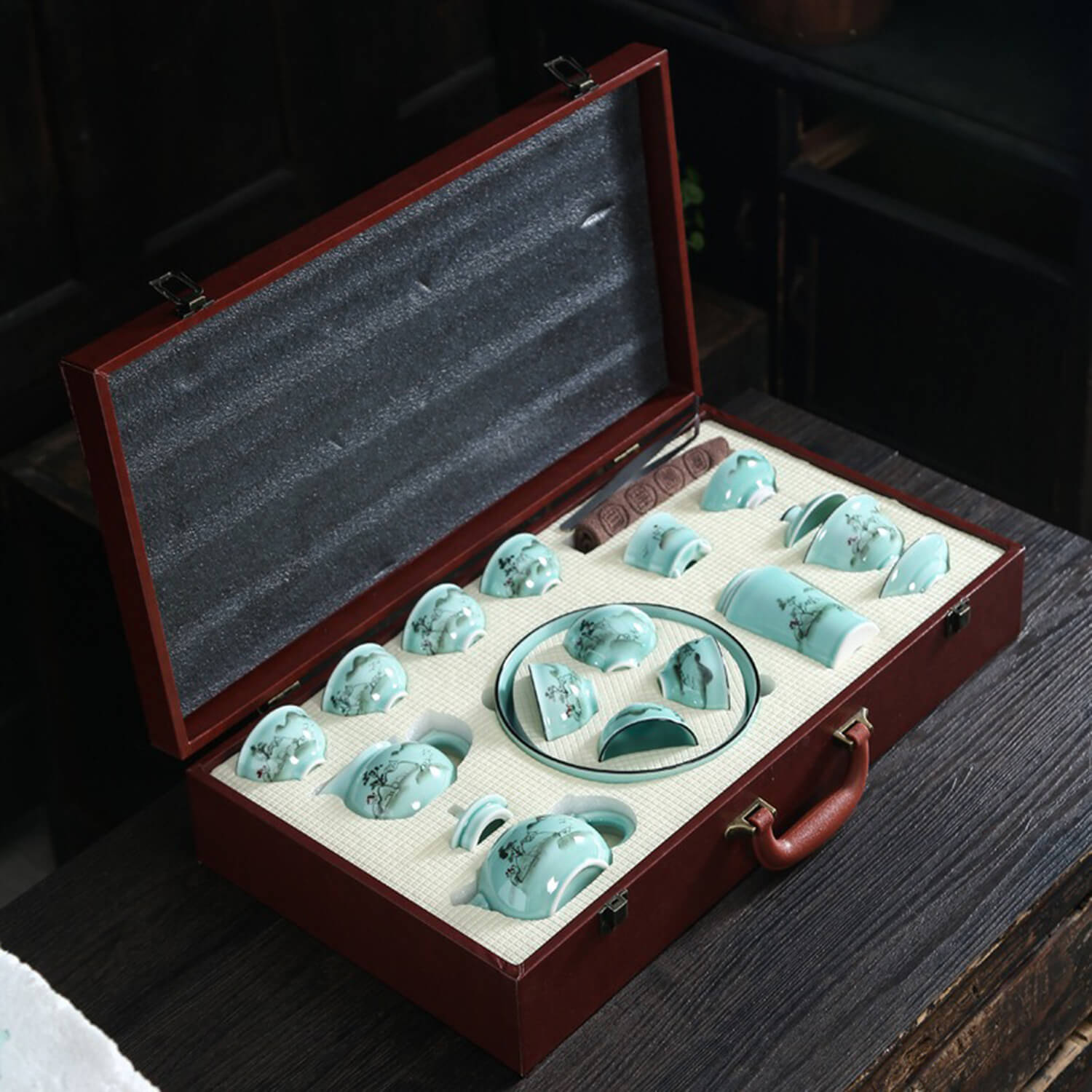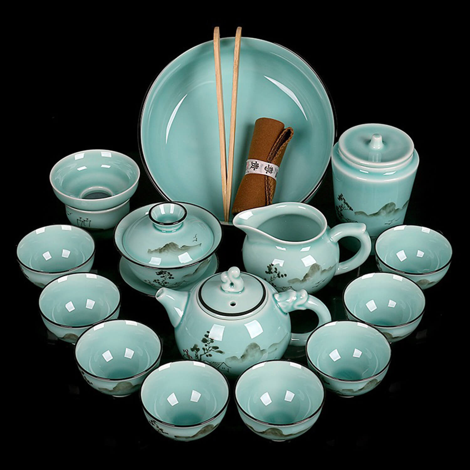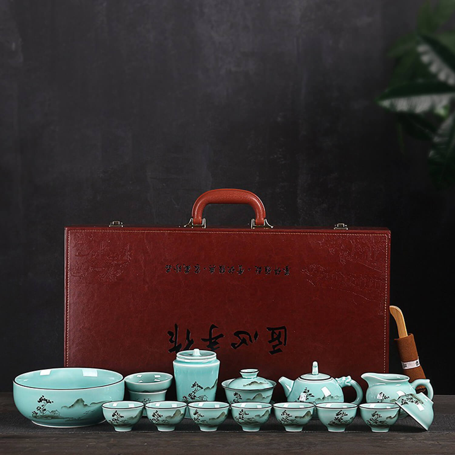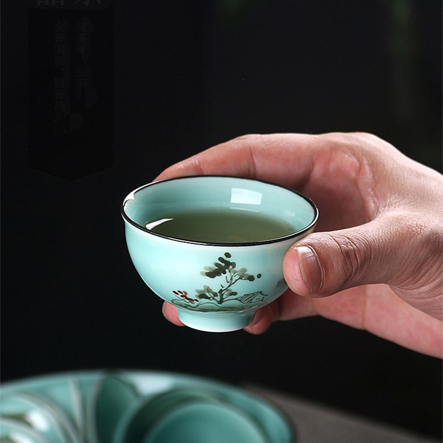 Experience the essence of traditional craftsmanship combined with modern design with our Elegant Hand-Painted Celadon Tea Set. This exquisite set, crafted from premium celadon and adorned with intricate hand-painted landscape motifs, offers a unique tea-drinking experience steeped in the beauty of oriental aesthetics.