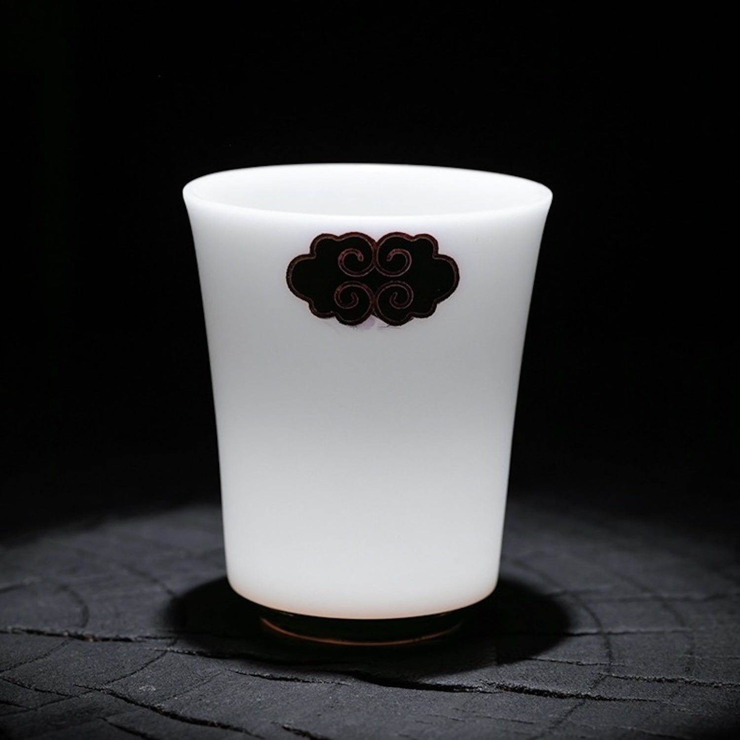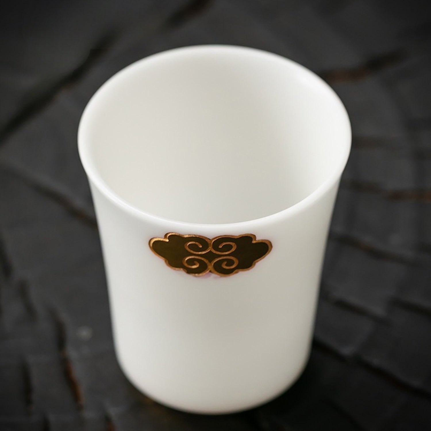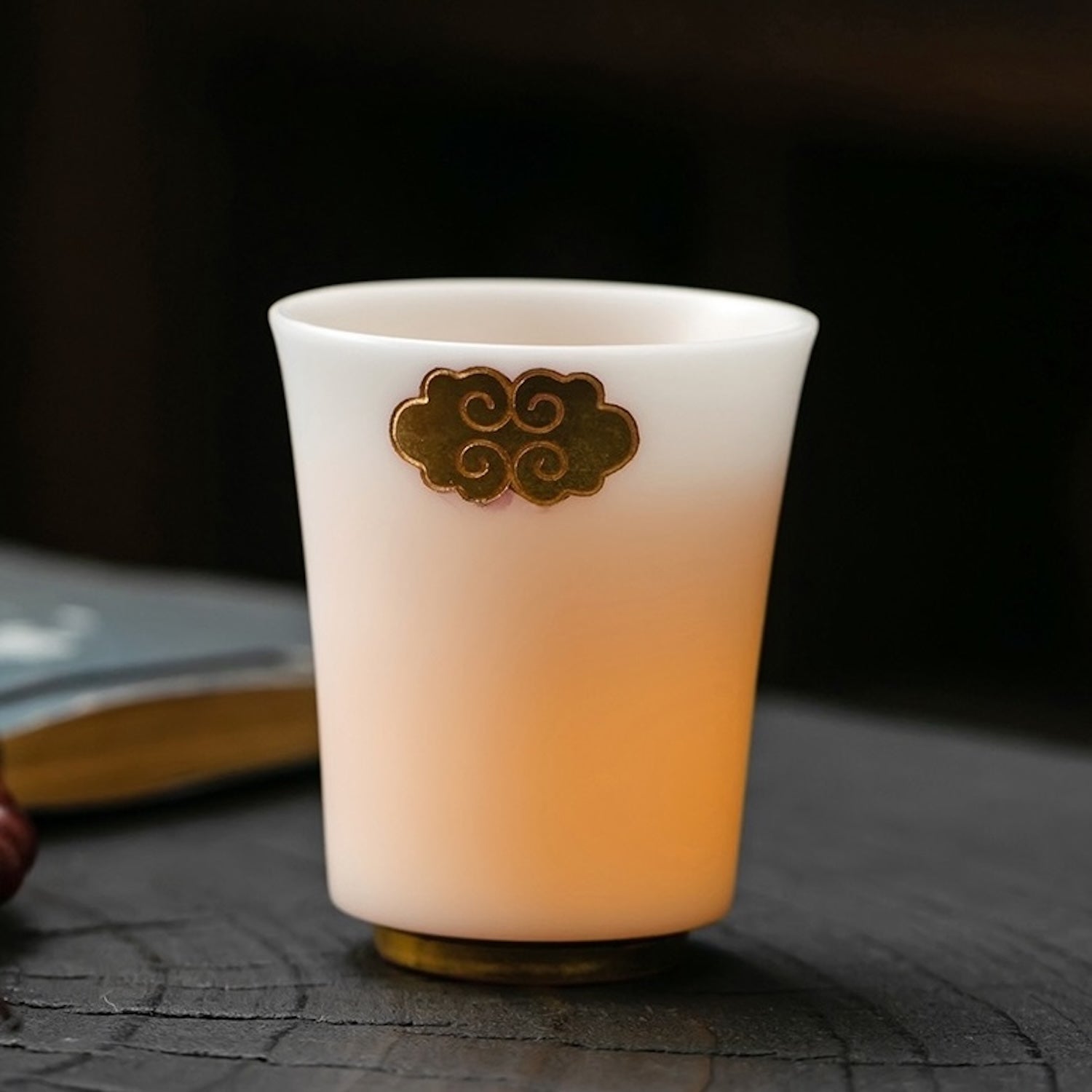Handcrafted from translucent ice jade porcelain, this 70ml cup glows with a jade-like radiance under light. Embossed with a 24k gold Ruyi motif, it symbolizes prosperity and elegance, while the gold-lined foot and artisan signature add a refined finishing touch. The dense white clay body feels smooth to the lips and pure to the taste, ensuring no flavor interference. Perfectly sized for gongfu tea rituals or espresso shots, it bridges Eastern tradition and modern lifestyle. Whether for daily use, gifting, or collecting, the Ice Jade 24k Gold-Lined Cup embodies understated luxury and timeless craftsmanship.
