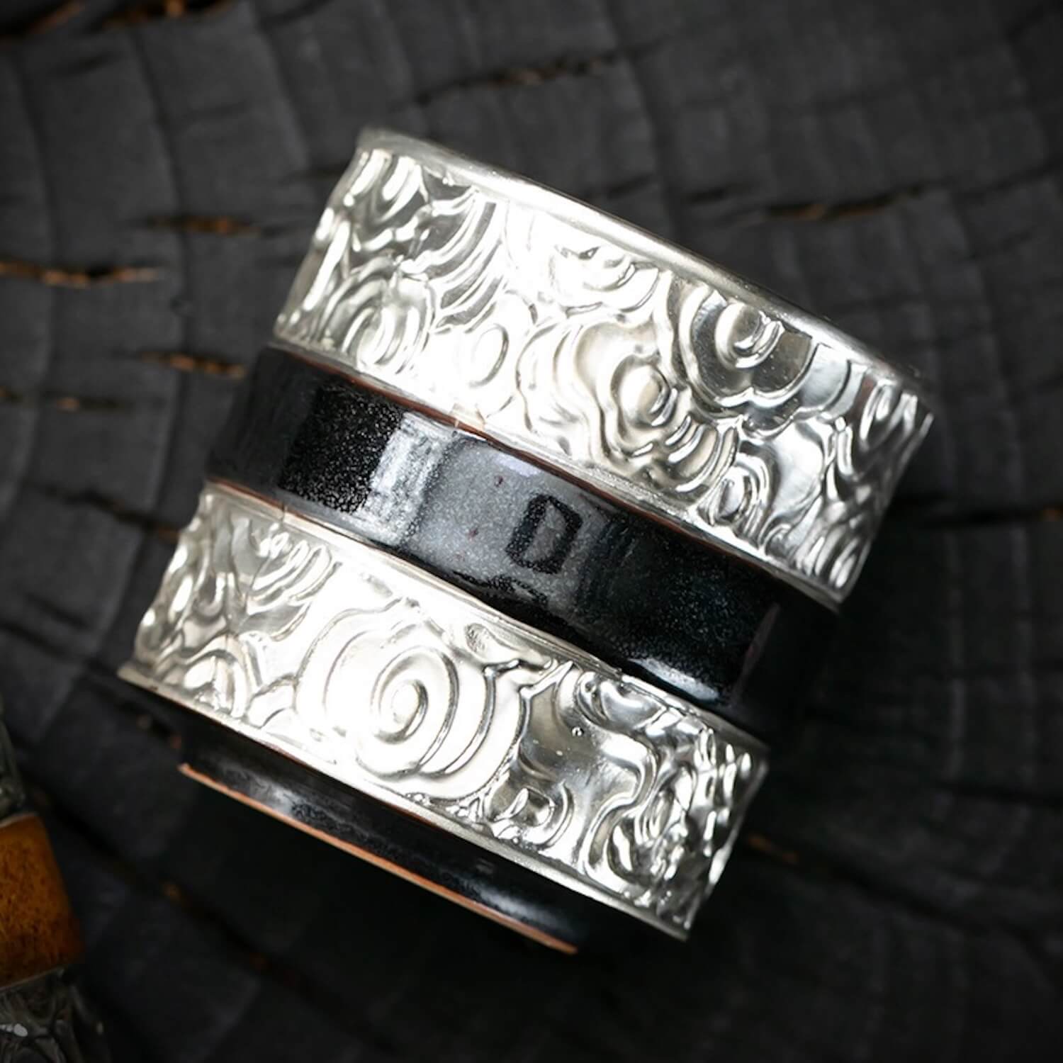 - Three-Layer Structure – Black glaze band offers a smooth grip and temperature balance, framed by cloud-textured silver bands.
