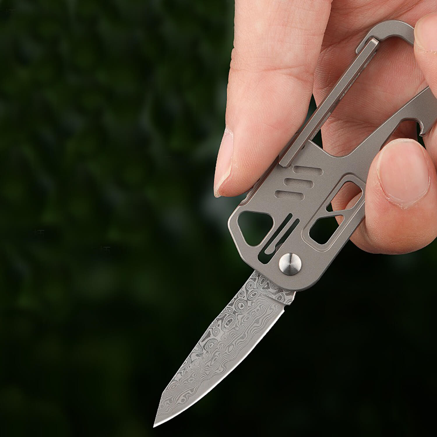 Constructed from TC4 Grade 5 Titanium, the knife body ensures rugged reliability, lightness, and corrosion resistance, while the Damascus steel blade adds a touch of elegance with its distinctive patterned surface. This blade is not just about its good looks - it's a perfect blend of toughness and sharpness that you can rely on.