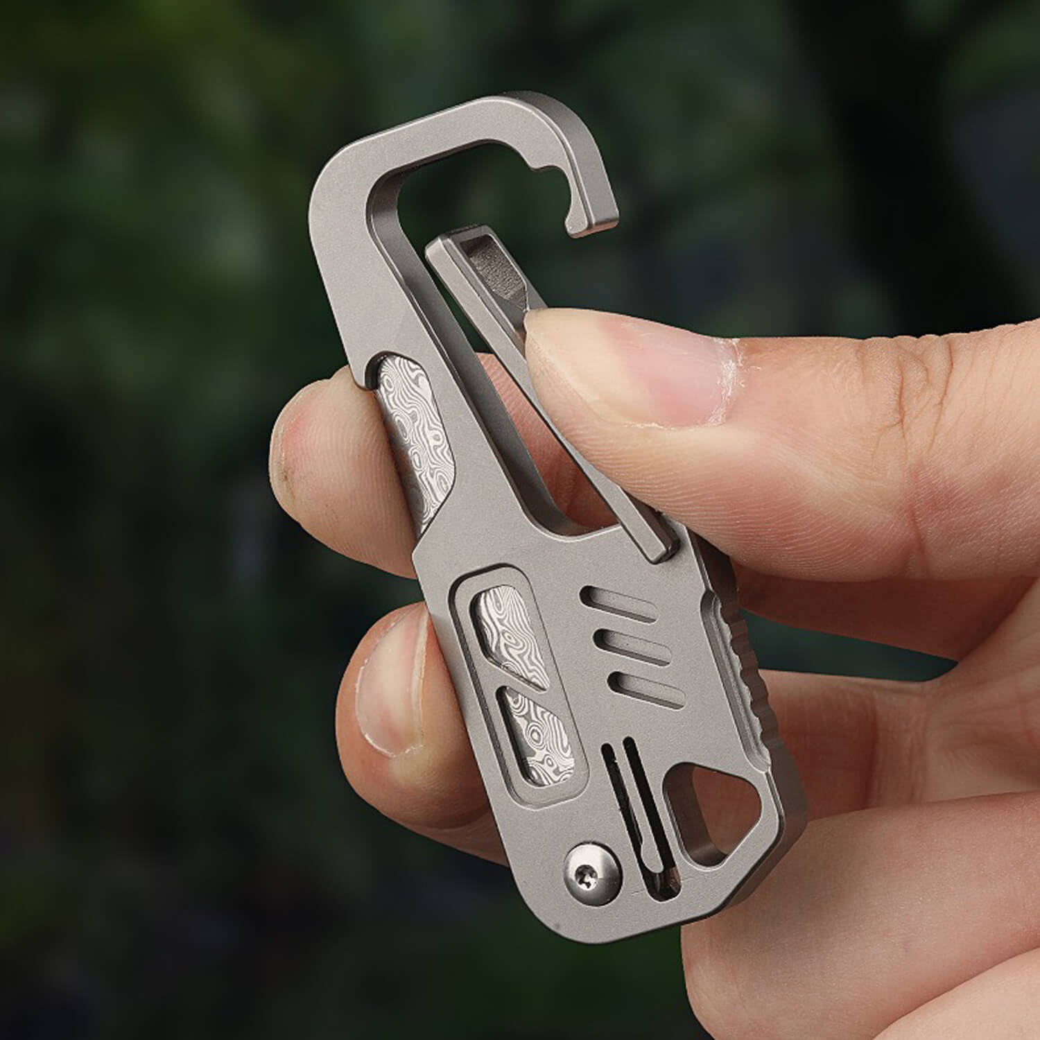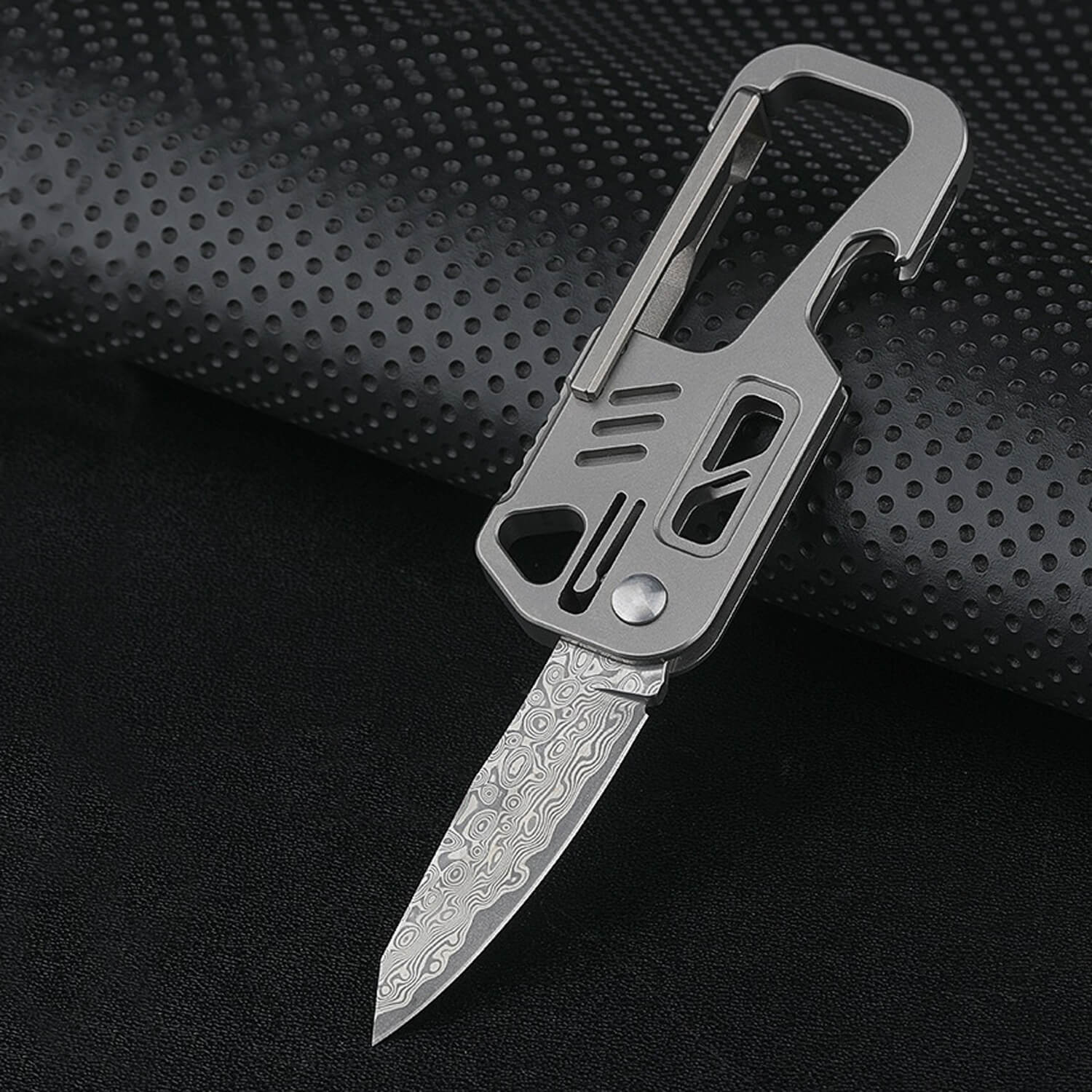 Introducing the Polar Pocket Knife in Titanium and Damascus Steel - a statement piece that refuses to be ignored. This ultra-cool carabiner merges high functionality with exceptional aesthetics to create a tool that you'll want to show off.