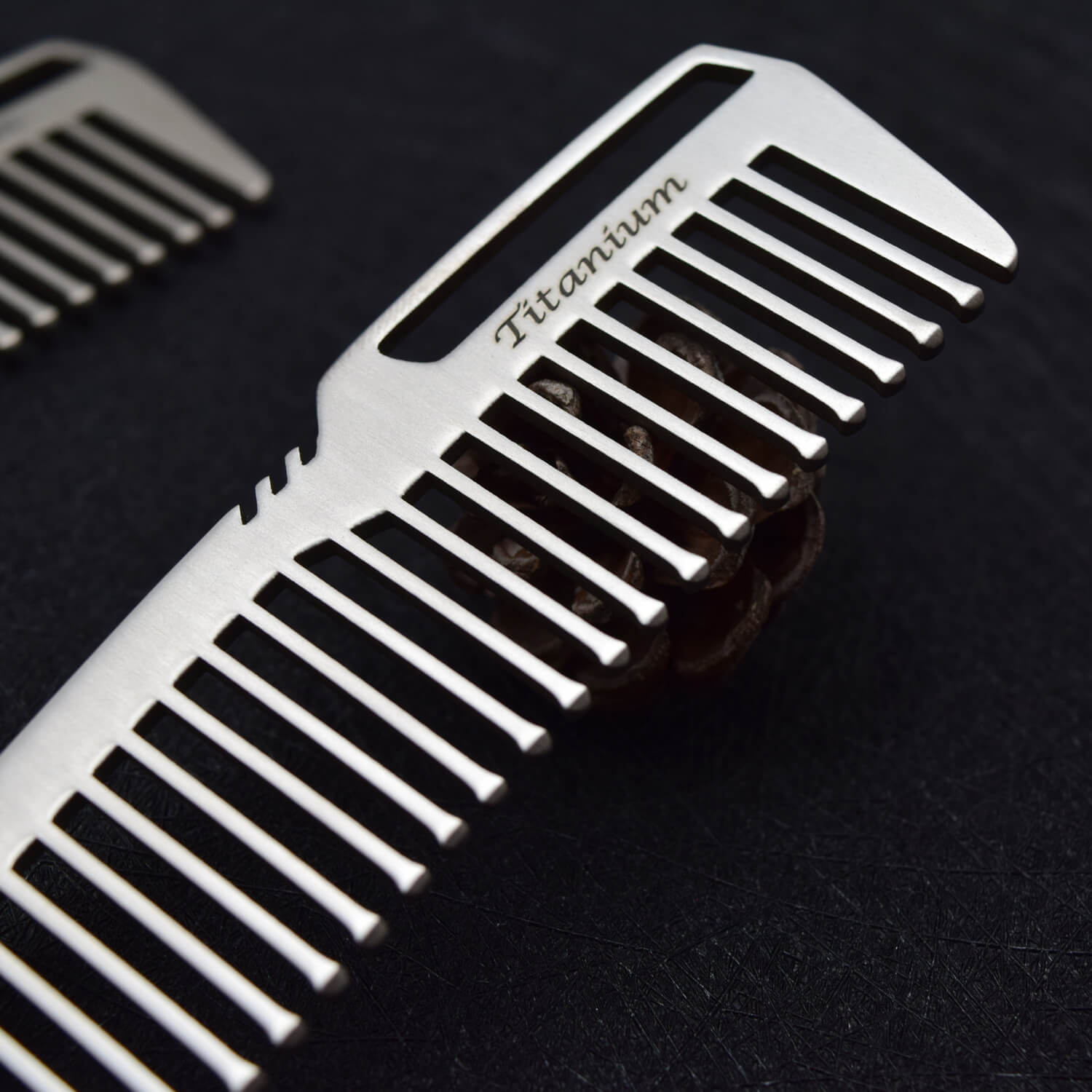 Titanium has the highest strength-to-density ratio of any metallic element on the planet, which means that your comb is lightweight and will last for a lifetime. You never have to worry about your comb being bent or stretched out of shape because it takes a lot of force to change the shape.