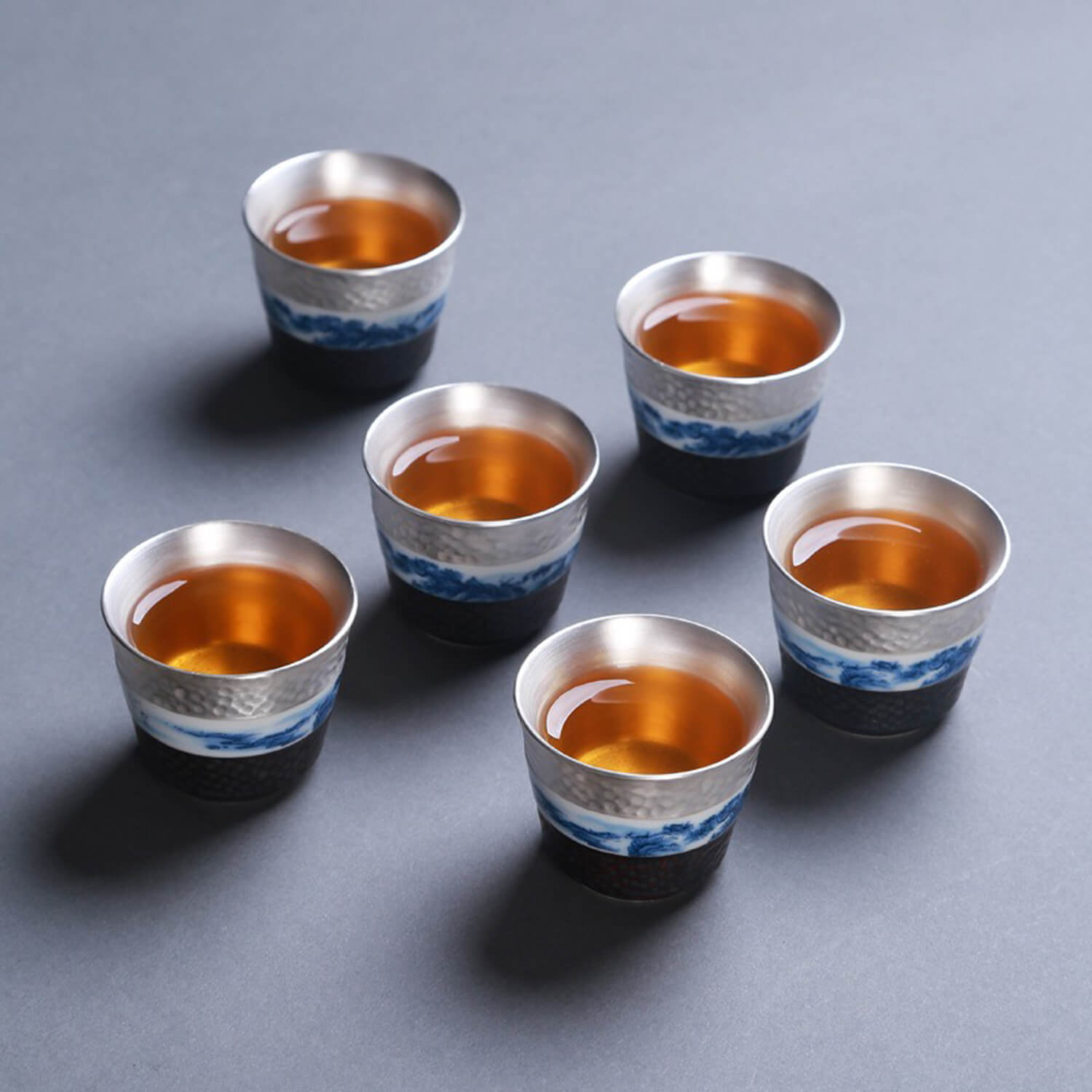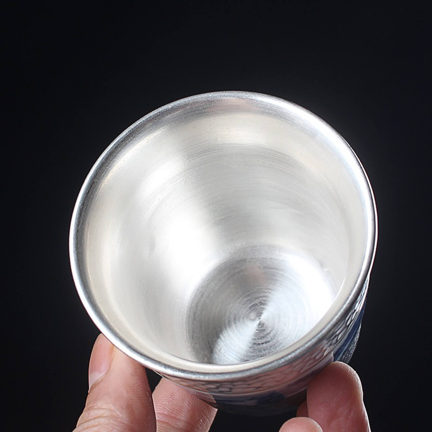 Crafted with intricate attention to detail, every cup boasts a hand-hammered .999 pure silver lining that graces the upper third, introducing a touch of opulence contrasting beautifully with the black glaze porcelain. This radiant silver is not only aesthetically pleasing but also inherently antibacterial, promising a clean, healthy, and sanitized drinking experience for a lifetime.