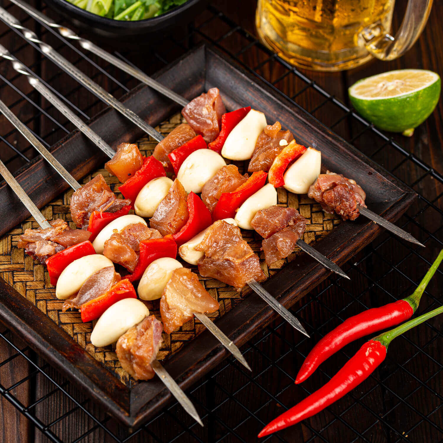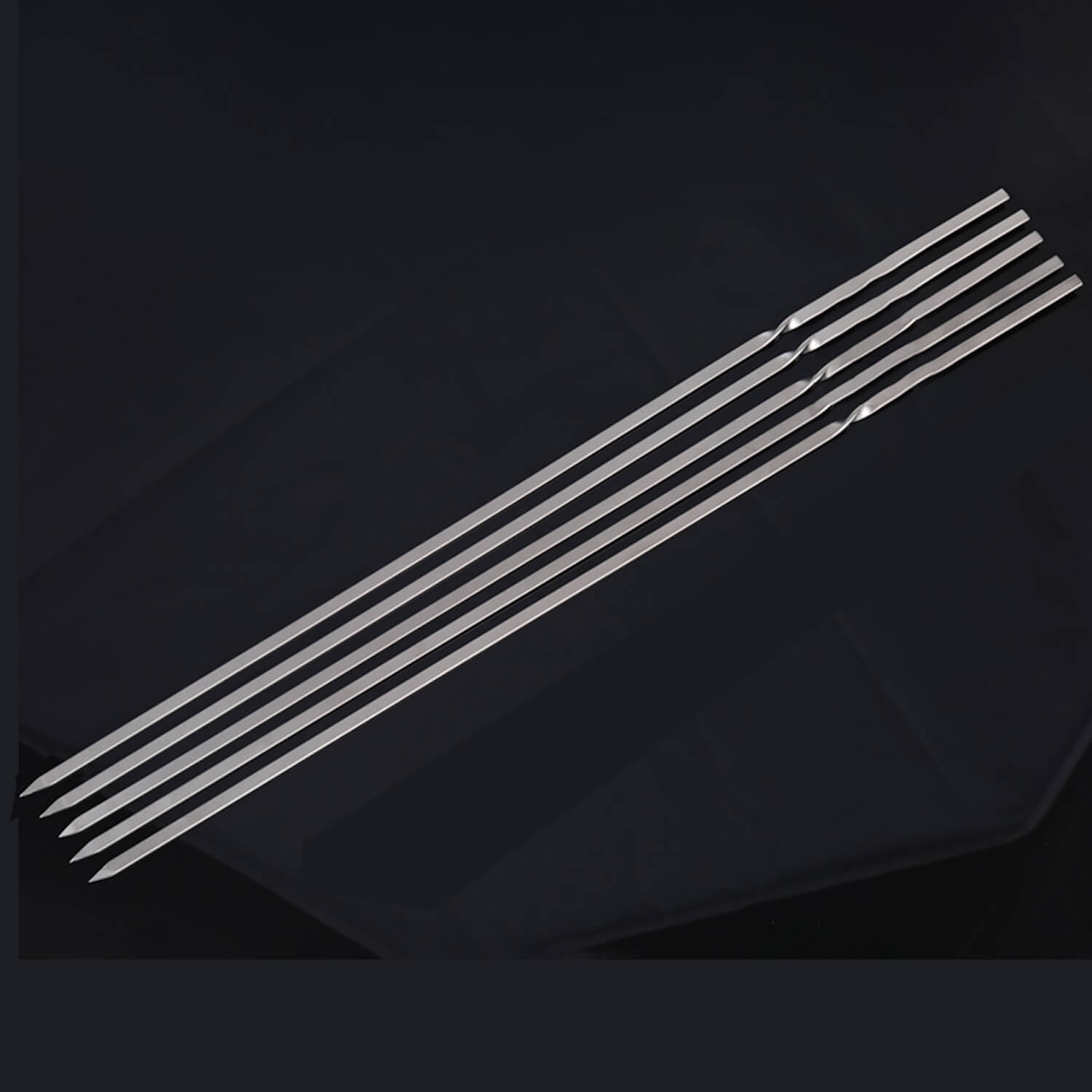 The one-piece design makes it easy to rotate and heat your food evenly too. Measuring 7.87"-15.75" in length, these skewers are perfect for shish kabobs, shrimp, chicken, fruit, vegetables, meat, beef, and more. At 2mm thick and 5mm wide, they are strong and tough enough to handle whatever you throw at them.