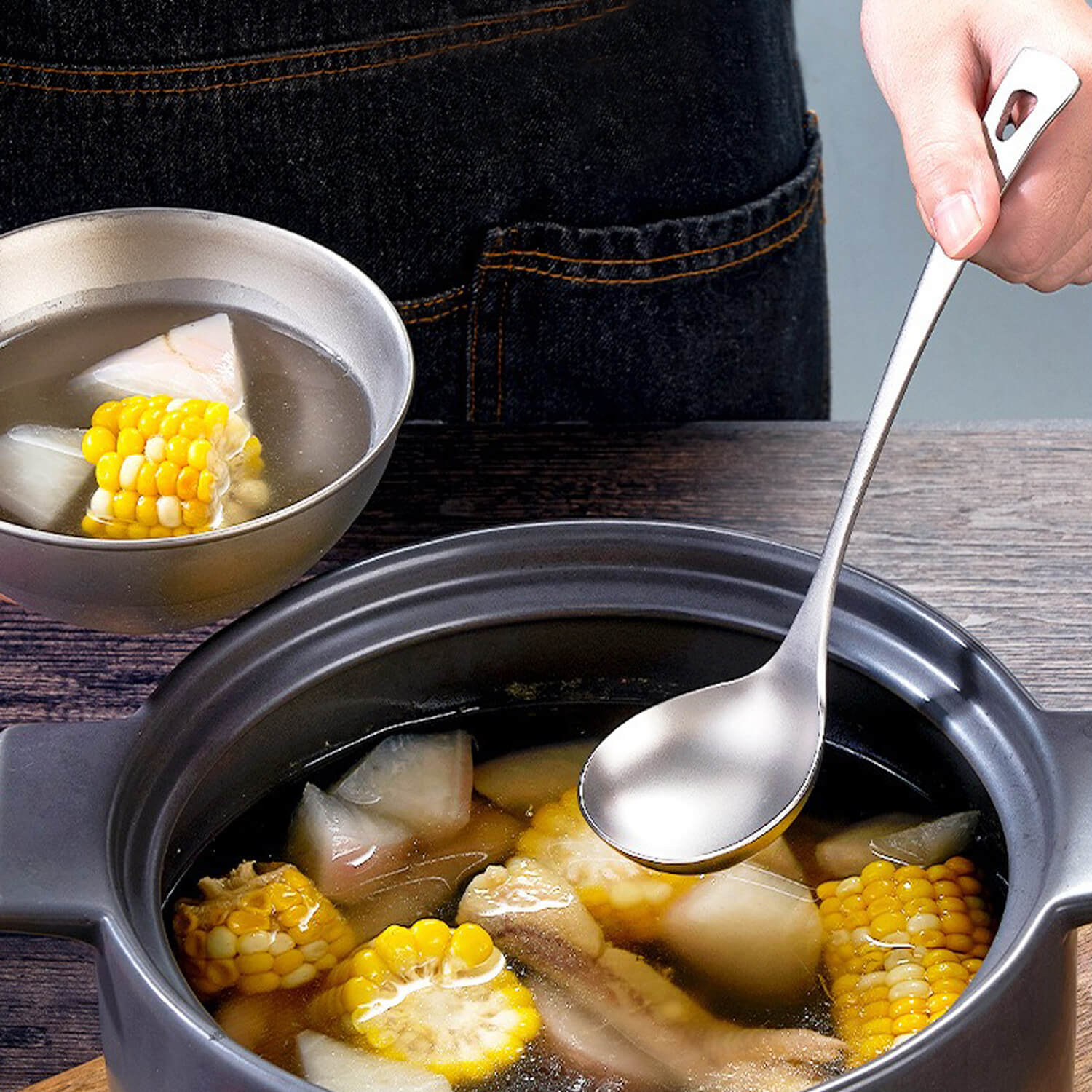 Made from solid 100% Grade 1 (CP1) Titanium! CP1 is the purest form of Titanium that is the most resistant to corrosion and the safest metal for our body. In fact, titanium is so compatible with our body that bone can actually grow around titanium implants! Our Titanium Deep Soup Spoon is durable, hygienic and safe!