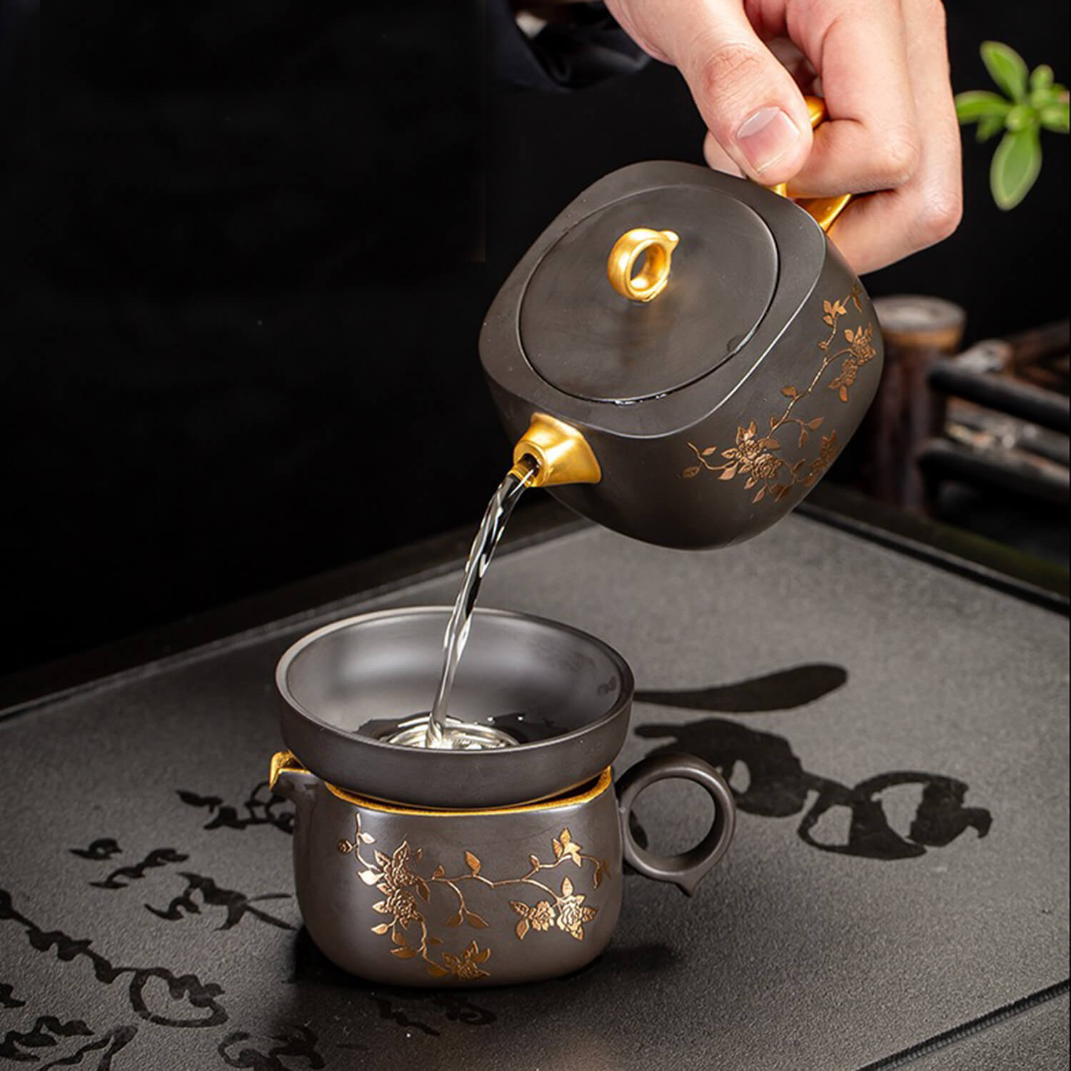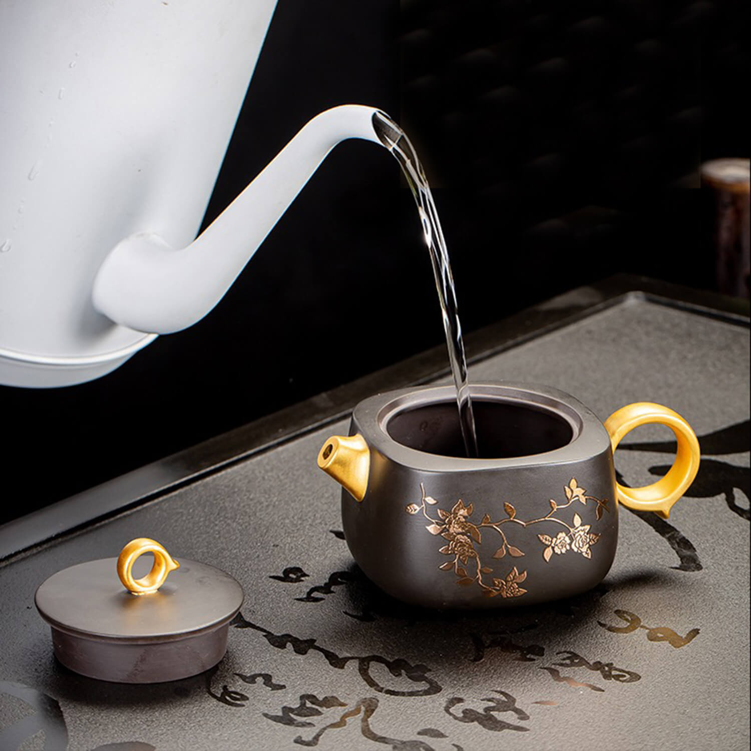 Heat Retention and Stability: The natural density of Yixing clay and the insulating properties of the 24k gold lining allow the tea to stay at a consistent temperature, releasing a fuller, more aromatic flavor. This makes it ideal for teas that benefit from a steady brewing environment.