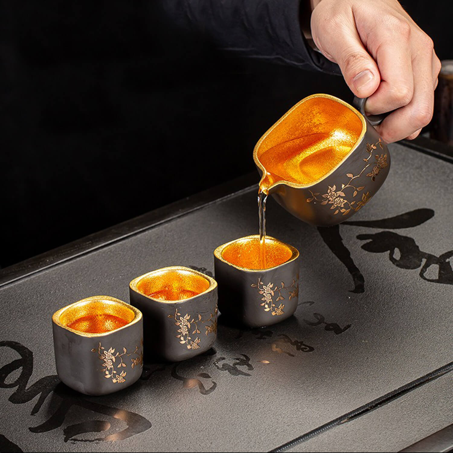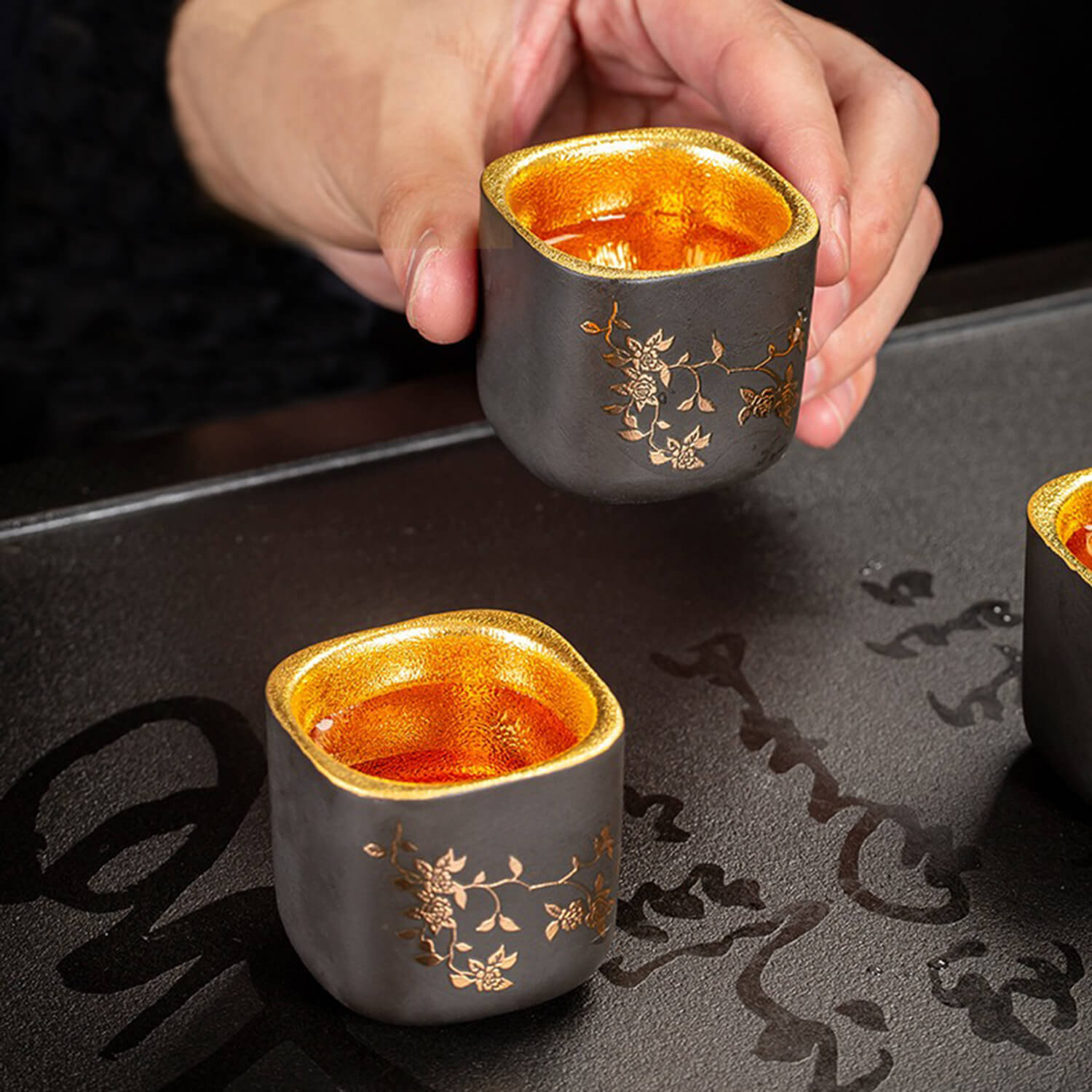 24k Gold Lining: The interior of each piece is lined with 24k gold, adding a luxurious touch that not only elevates the visual appeal but also provides a warm, reflective quality to your tea. The gold lining highlights the tea’s color and enhances the overall sensory experience.