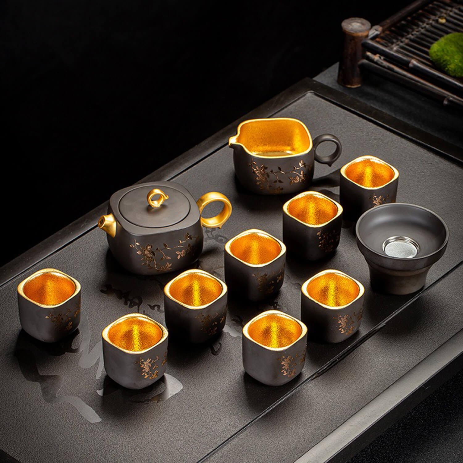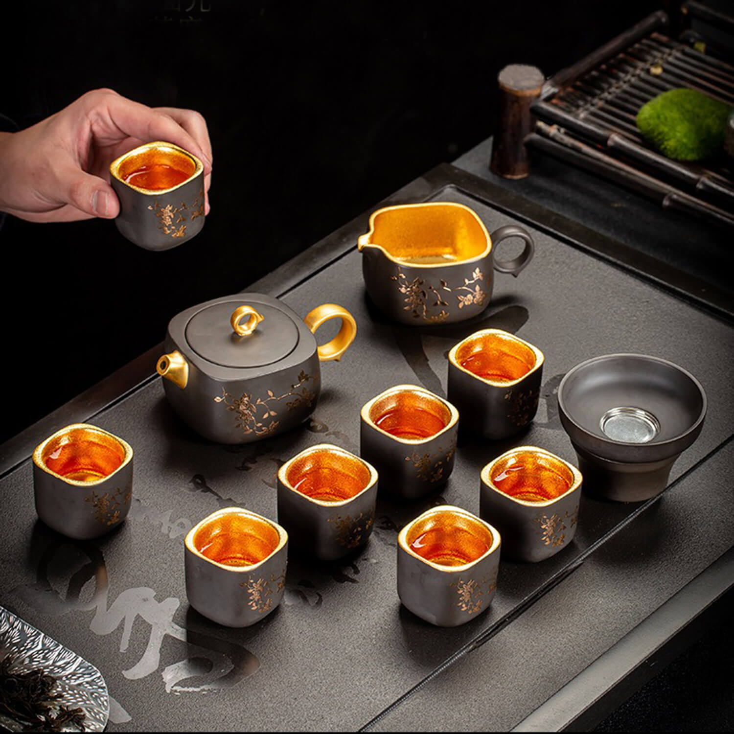 Aging with Grace: With regular use, the Yixing clay develops a beautiful patina, while the hand-painted gold designs retain their elegance. This set is designed to age gracefully, becoming more beautiful and valuable over time.