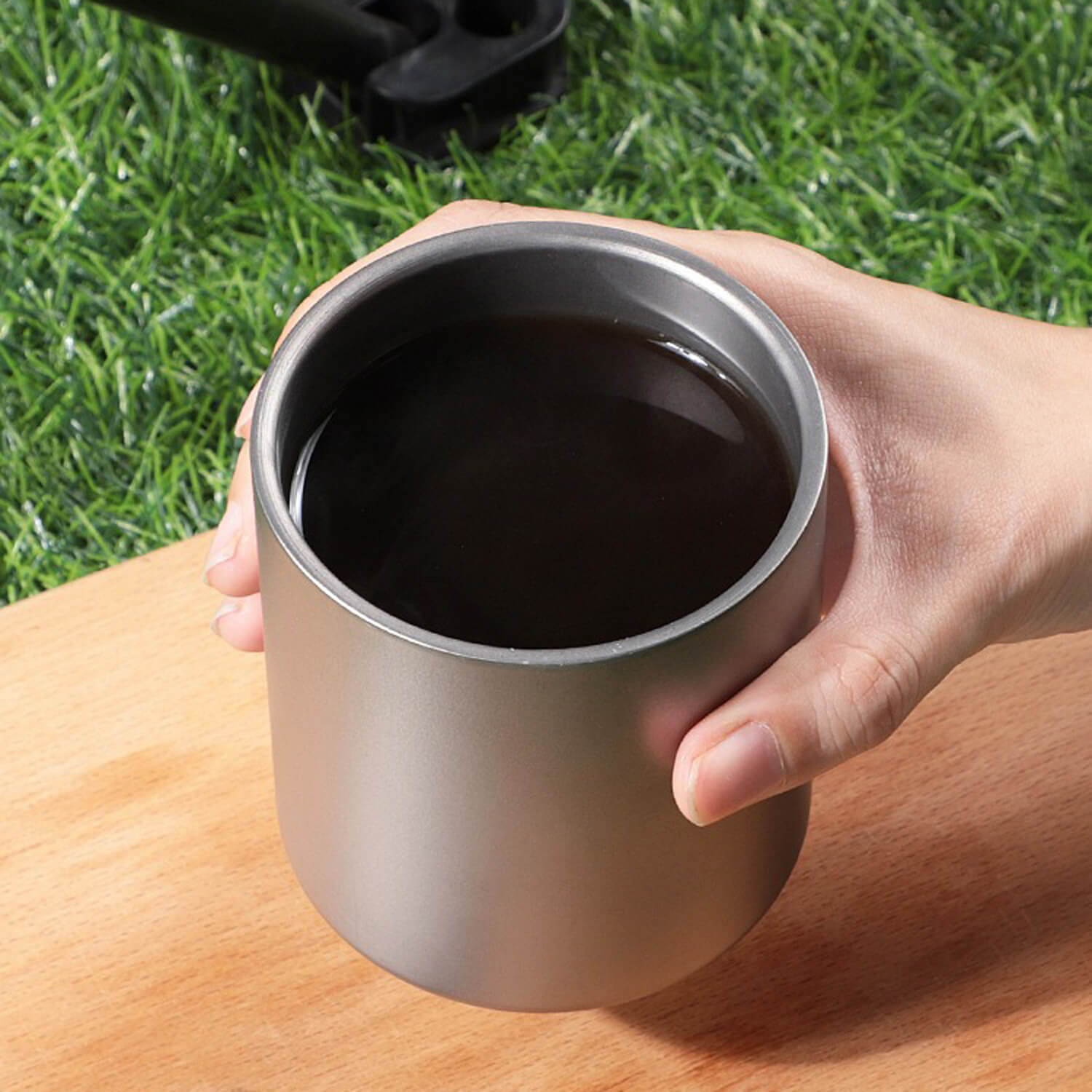 Strong and lightweight titanium mug that keeps hot drinks hot and cold drinks cold