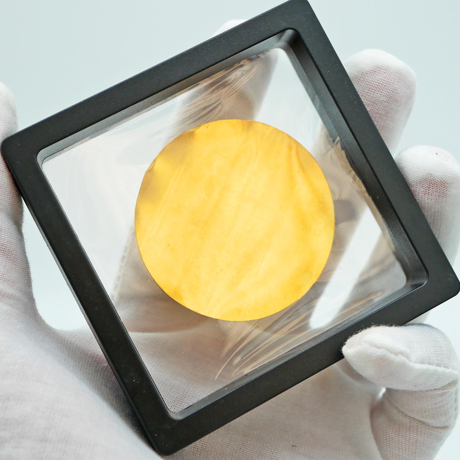 Crafted with utmost precision, this disk is more than just a stunning piece of gold. With a purity of 99.99%, it's a symbol of rarity, innovation, and elegance. Originally designed as a sputtering target for Scanning Electron Microscopy (SEM), it now finds a new life as a distinctive desktop ornament.