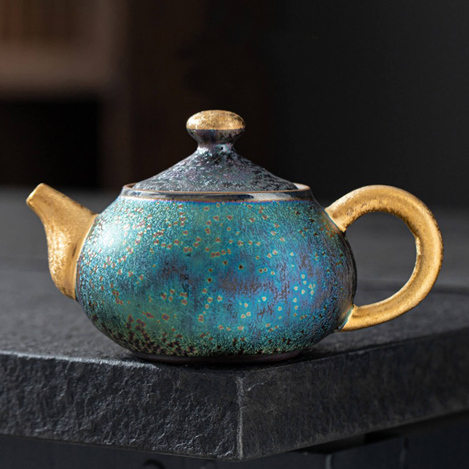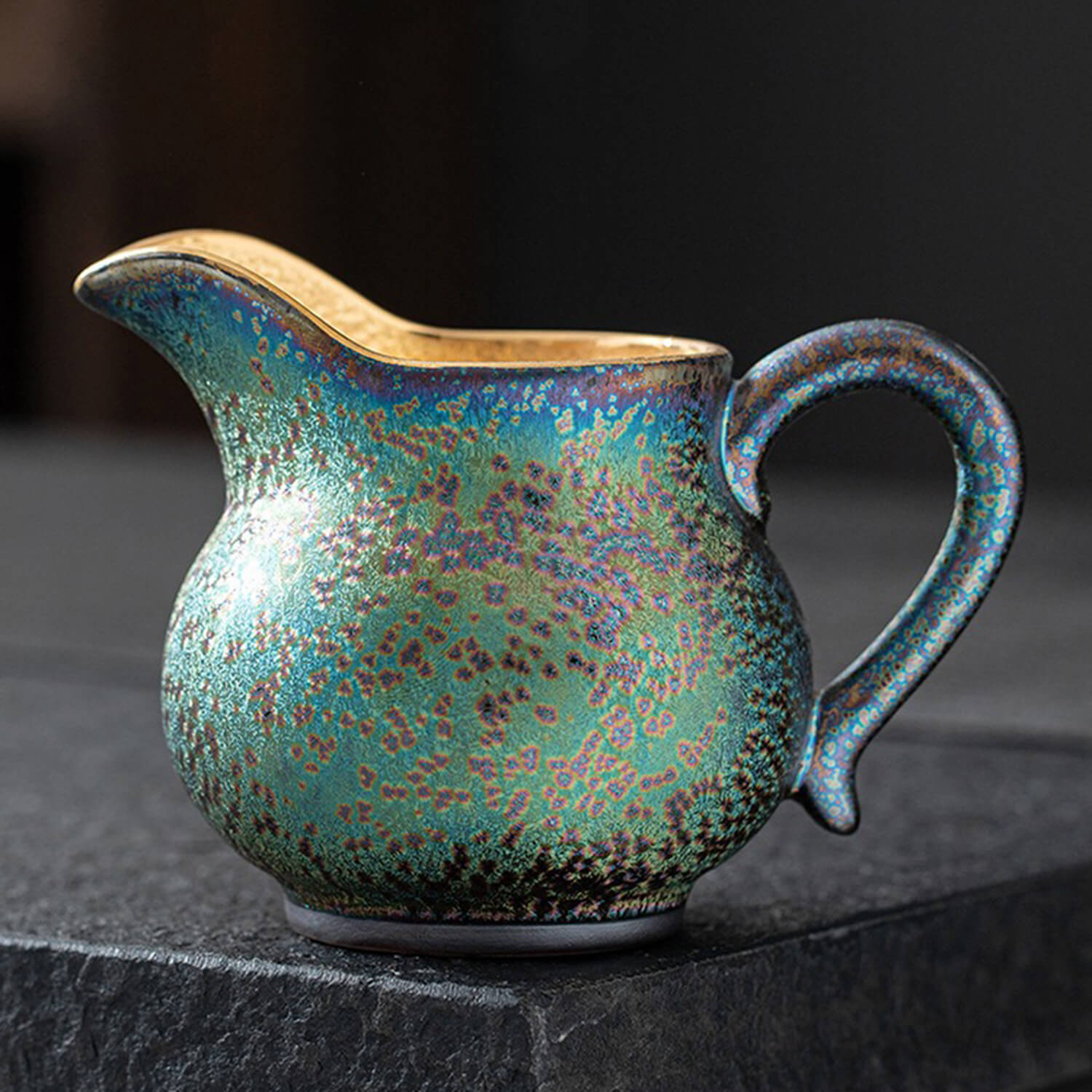 Each piece is handcrafted for over 72 hours with precision, and under the high firing temperature of 1380 Celsius, the specialized glaze with high iron content creates a distinctively beautiful peacock pattern.