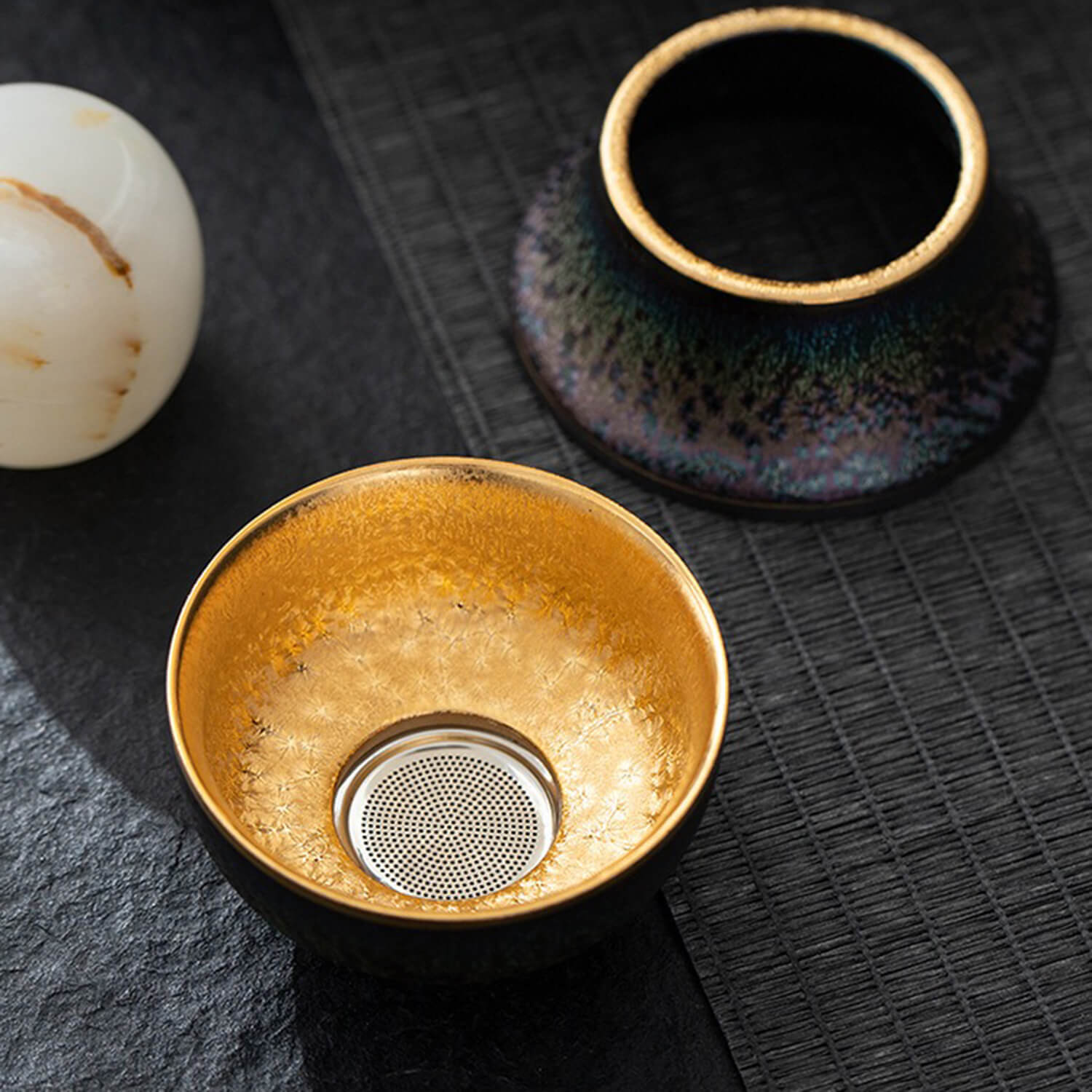 Kaolin porcelain is known for its distinctive white color, which allows the true color and texture of tea to shine through. It is also valued for its ability to retain heat, which makes it perfect for serving hot beverages. The 24-karat gold lining used in the Winter Mountain Teacup not only adds a touch of luxury but also ensures that the tea's taste remains pure, as gold is an inert material that does not react with substances in the tea.