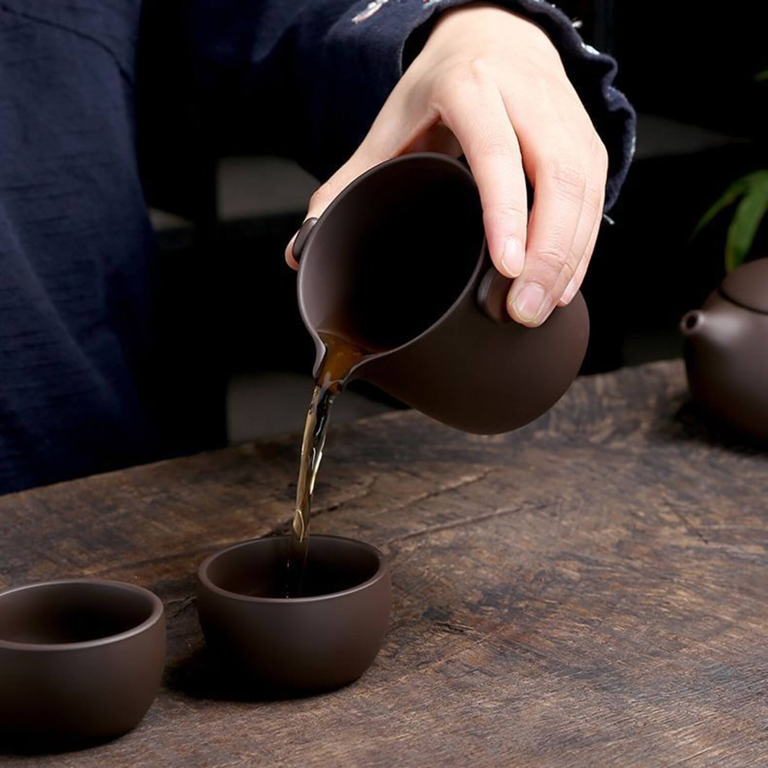 Premium Yixing Clay Craftsmanship: Each piece in this set is made from high-quality Yixing clay, renowned for its natural breathability and ability to enhance the flavors of fine teas. Its elegant, understated finish embodies a timeless aesthetic that complements any setting.